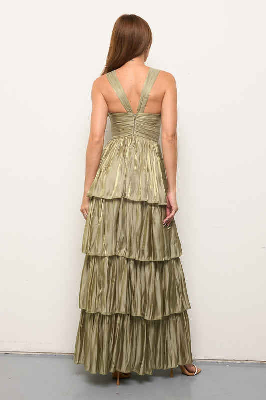 Vestido con escote en V con broche y manga 3/4 PLUS
